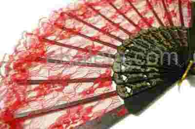 Wachlarz z koronki CZERWONY