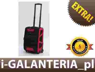 Mała walizka podróżna miękka z miejscem na laptop, 2 kółka, TSA, marki VERUS z kolekcji Monte Carlo - kolor czarno-czerwony