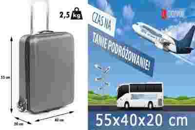 Wysokiej jakości walizka przeznaczona do tanich linii lotniczych RAYANAIR i jako duży bagaż podręczny do linii: EASY JET, WISS AIR. Linia RAYANAIR wprowadziła bardzo restrykcyjne wymogi odnośnie bagażu podręcznego. Całkowity rozmiar bagażu nie może przekraczać 55 x 40 x 20 (cm), całkowita waga nie może przekraczać 10kg. Dopłata za przekroczenie przyjętego standardu to NAWET 285zł.