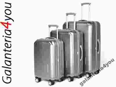 Wyjątkowy zestaw bagażu z POLIWĘGLANU marki VIP COLLECTION z kolekcji Mont Blance w kolorze srebrnym. Zestaw składa się z 3 walizek na kółkach o wymiarach 28", 24" 20". Jest to absolutny HIT na rynku polskim. Walizki są wykonane z najwyższej jakości komponentów a kolor i wzornictwo zgodne z aktualnymi trendami modowymi. Proszę zwrócić uwagę na elementy jezdne. Duże kółka, podwójne, łożyskowane, wykonane na bazie kauczuku nie tylko zapewniają niski poziom hałasu podczas toczenia ale również łatwiej pokonują wszelkiego rodzaju nierówności i rożnego rodzaju kratki. Specjalnego rodzaju okucia obudowy i oryginalna rączka uzupełniają wysokie walory estetyczne walizki..