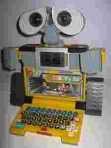 WALL-E LEARNING LAPTOP LAPTOP EDUKACYJNY WALL-E Ucz się i baw przyłączając się do WALL-E'ego i EVY podczas ich przygód w galaktyce. Laptop WALL-E został zaprojektowany na podstawie sympatycznej postaci robota WALL-E z filmu Disney Pixar. Laptop wyposażony jest w wyciąganą klawiaturę, interaktywne ręce, które służą jako sterowniki i obracają się o 360 stopni przy odpowiadaniu na wybrane pytania, a dodatkowo WALL-E mruga zachęcająco okiem
