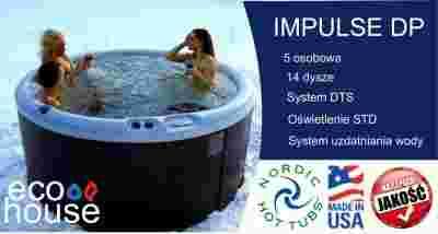 Impulse DP to idealna wanna SPA (minibasen) do kąpieli dla całej rodziny. Taka kąpiel likwiduje stres i poprawia krążenie. W porównaniu do modelu Impulse, wersja DP jest o 10 cm głębsza. Wanna SPA posiada 14 dysz do hydromasażu, z możliwością płynnej regulacji intensywności strumienia wody. Wyposażona jest w system ozonowania, dzięki czemu utrzymanie wody w czystości jest znacznie łatwiejsze. Bardzo wygodny schodek wewnątrz wanny SPA ułatwia wchodzenie i jednocześnie jest wygodnym miejscem do siedzenia. Impulse DP to idealna wanna dla tych, którzy marzą, by cieszyć się wspaniałym hydromasażem w domu, kiedy tylko tego zapragną. Wanna SPA Nordic Hot Tubs to rozsądny wybór. Zapewnia przyjemną, odprężającą kąpiel SPA za bardzo przystępną cenę. Sprawdza się w każdym klimacie. Kąpiele w wannie SPA firmy Nordic to naturalna terapia przeciwbólowa między innymi w stanach zapalnych stawów. W wannach SPA Nordic Hot Tubs wykorzystywane są zalety wirowego ruchu wody. Inni producenci oferują jedynie masaż w tych miejscach, gdzie umieszczone są dysze. Opracowany przez Nordic „Dual Therapy System” (DTS™) to rozwiązanie stosowane tylko w naszych wannach. System łączy korzyści masażu strumieniem wody z dysz o dużym przepływie z wirowym ruchem wody. Podczas kąpieli w wannie Nordic ciało poddawane jest jednoczesnemu masażowi zarówno z przodu, jak i z tyłu. Od 1995 roku Nordic Hot Tubs jest jednym z liderów wśród producentów wanien SPA. Flagowe produkty Nordic to wysokiej jakości terapeutyczne wanny SPA.