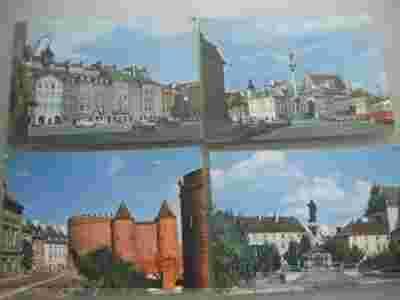 Warszawa - 4 pocztówki -stare autobusy i samochody