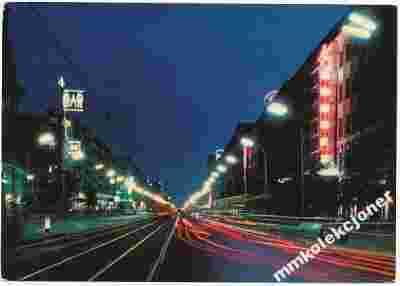 Warszawa nocą Al. Jerozolimskie sklepy neony
