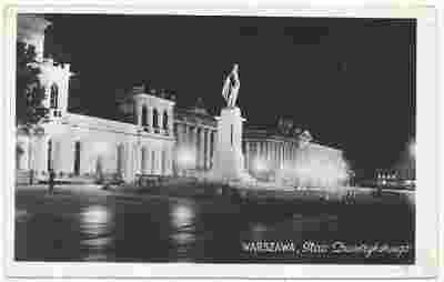 Warszawa nocą pomnik Dzierżyński
