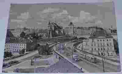 Warszawa. Trasa W-Z. Stary tramwaj, samochód.