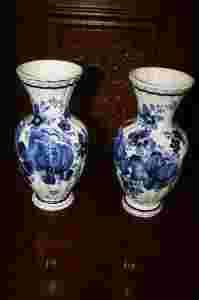 Stan wizualny bardzo dobry, pomimo upływu czasu nadal wzbudzają zainteresowanie wśród szerokiego grona osób ceniących profesjonalizm i kunszt wykonania. Wytwórnia Boch Keramis została założona w 1841 roku w miejscowości Saint Vasst (od 1869 La Louviere) w Belgii przez spółkę "Boch Freres". W roku 1874 kierujący nią Victor Boch, pod wpływem rosnącego zainteresowania kolekcjonerów starymi fajansami z Delft, utworzył w ramach wytwórni specjalny oddział zwany "la Chambre de peintres hollandais", zatrudniając w nim sprowadzonych z Maastricht holenderskich ceramików, pracujących wcześniej w Delft. W latach 1874 - 1892 wytwarzano w nim ręcznie malowane obiekty biało-niebieskie i polichromowane w stylu starych fajansów z Delft, sygnowane sygnaturą w postaci splecionych liter "B,F,K" (Boch Freres Keramis) czasem umieszczonymi poniżej inicjałami malarza dekoratora. Oferowane do sprzedaży wazy są ozdobione motywami kwiatowymi,w dolnej części sygnatura: Delfts Blauw.