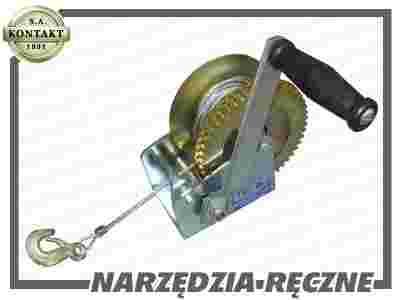 RĘCZNA WCIĄGARKA LINOWA o udźwigu 1200 kg Wciągarka (wyciągarka) korbowa jest wielofunkcyjnym urządzeniem służącym do przemieszczania i podnoszenia ładunków. Wciągarka posiada ruchomy hak z zabezpieczeniem. Długość liny: 10 m