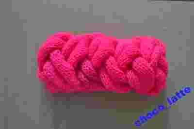 Wełniana opaska warkocz pleciona róż neon pink