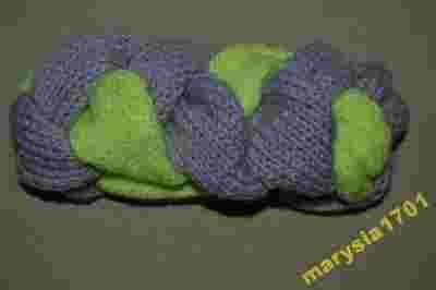 Wełniana opaska warkocz pleciona szary lime limonk