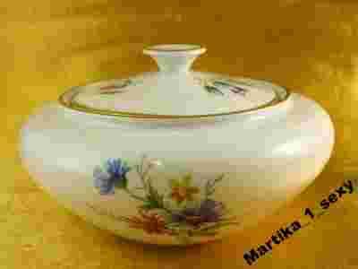 uroczą bombonierkę,wyprodukowaną w niemieckiej wytwórni porcelany Weimar/ lokalizacja: Niemcy / Turyngia / Blankenhain.Sygnatura znajdująca się na podstawie obiektu stosowana była w latach 1933 - ca. 1945.