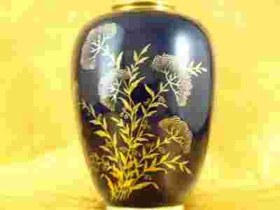 Wyrób z doskonałej jakości porcelany,strona zewnętrzna zalana prawdziwym,głębokim kobaltem co stanowi tło dla obustronnej dekoracji roślinnej w złocie.Wnętrze wazonu i obręcz podstawy w kolorze bieli.Obrzeże wylewu obwiedziono złotem.Całość wykonana bardzo solidnie i estetycznie.