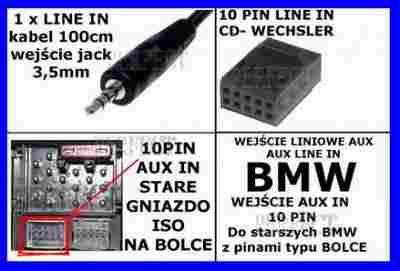 INTERFEJS AUX-IN DO BMW (starszych modeli w wtyczkami ISO na bolce) 10-PIN