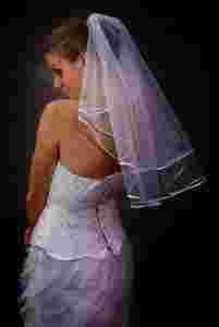 obszyty delikatną lamówką Welony wykonujemy w kolorze białym lub ecru