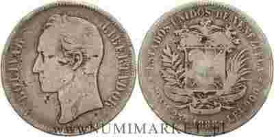 Wenezuela, 25 gram, 1888 rok, Ag, st. 4