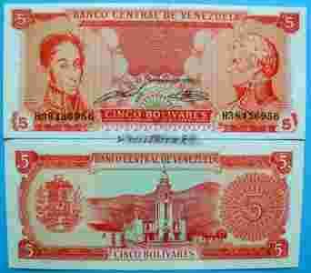 WENEZUELA 5 BOLIVARES 1989 R UNC !!!