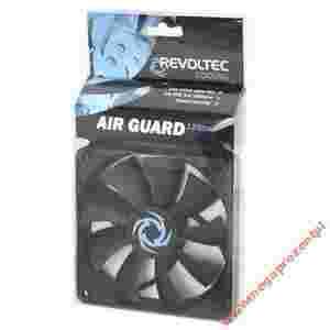 Revoltec wprowadził nową gamę wyjątkowo cichych i wydajnych wentylatorów pod nazwą „AirGuard”. Poprzez zastosowanie specjalnego łożyska w konstrukcji wentylatora osiągnięto niski poziom hałasu i długi czasy pracy. Wentylator wykonany jest z czarnego tworzywa sztucznego. Kable zasilające wentylatora oplecione są nylonową koszulką również w kolorze czarnym. |