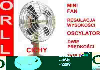 WENTYLATOR WIATRAK BIUROWY BIURKOWY USB/220V =