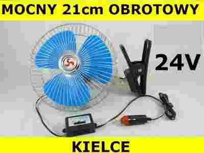 Zasilany jest z gniazdka zapalniczki samochodowej 24V, a długi kabel zasilający pozwala na bezproblemowe podłączenie wentylatora do prądu w każdym miejscu samochodu.