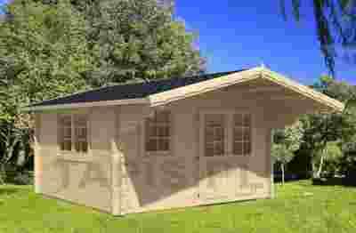 Wszystkie ściany zewnętrzne budowane są z balików łączonych techniką pióro-wpust, taki sposób montażu gwarantuje szczelność i trwałość konstrukcji. Komfort użytkowania polepsza duży daszek nad wejściem do domku tworząc miłe schronienie w deszczowe dni.