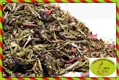 sencha, płatki czekolady, owoce wiśni, hibiskus, aromat