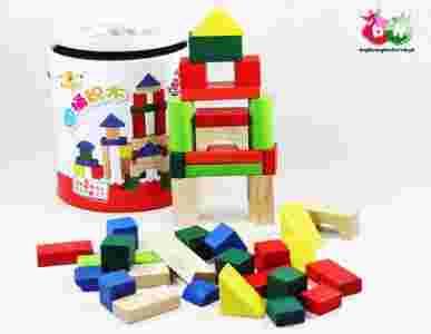WIADRO DREWNIANYCH KLOCKÓW 40el. kolorowe, śliczne