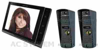 Monitor bezsłuchawkowy (głośnomówiący), posiada kolorowy wyświetlacz LCD wielkości 8". Monitor umożliwia otwieranie furtki oraz bramy. Posiada dodatkowe dwa wejście do podłączenia dodatkowej źródła sygnału audio/video przełączane sekwencyjne. Istnieje możliwość rozbudowy o dodatkowe monitory. Zasilanie z zasilacza dołączonego do zestawu. (zasilacz z wtyczką do gniazda 230V).