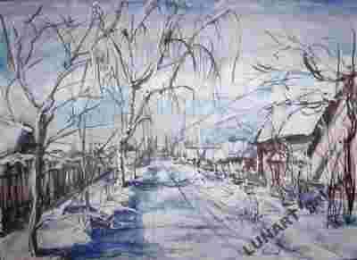 WIEŚ POLSKA ZIMA BCM obraz samotna brzoza droga