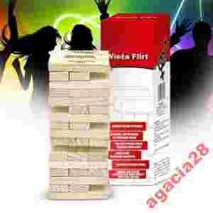 Na pewno znasz najbardziej popularną grę, w której główną rolę grają drewniane klocki. Wieża Flirt to jej nowa odsłona. Tak jak w klasycznej wersji chodzi tu przede wszystkim o wyciąganie drewnianych klocków tak, aby wznoszona konstrukcja się nie zawaliła.