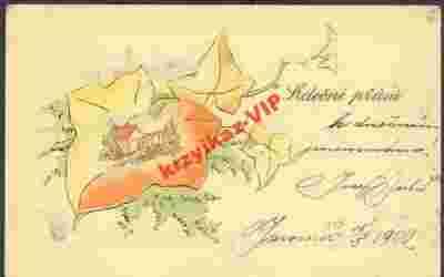 wiejski domek wpisany w liści bluszcza 1900r.