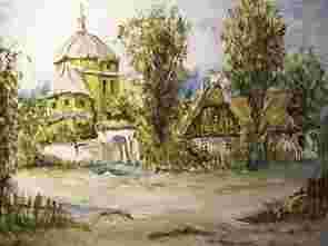 WIEJSKI ZAKĄTEK , AKWARELA ,BCM