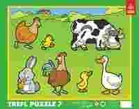 Pomysłowe puzzle stworzone z myślą o młodszych dzieciach. Układanka zawiera 7 elementów - zwierząt wiejskich umieszczonych na tle przypominającym zieleń trawy , w ramce utrzymującej obrazem w całości. Ramka ułatwia młodszym dzieciom ułożenie obrazka i pozwala na bezpieczne przenoszenie układanki, dzięki czemu swobodnie ozdobimy nią pokój. Wyraziste kolory i prosty wzór są idealnie dostosowane do wieku i umiejętności dziecka. Zabawa polega na osadzeniu zwierząt we właściwe miejsca obrazka, ćwicząc spostrzegawczość, rozpoznawanie kształtów i rozwijając poczucie estetyki. To także doskonała okazja do tego, żeby nauczyć dziecko nazywać i rozpoznawać zwierzęta żyjące na polskiej wsi, zachęcając do wspólnego opowiadania o tym, co jedzą, jakie wydają dźwięki, gdzie mieszkają.