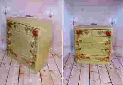 Wielka komoda sosnowa w róże, vintage, shabby
