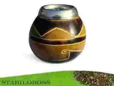 Klasyczna calabaza z metalowym okuciem i wygrawerowanym ornamentem. Wykonana z owocu o pojemności od 250 do 350 ml. Picie yerba mate z tykwy - calabazy dostarcza dodatkowych wrażeń estetycznych i smakowych.