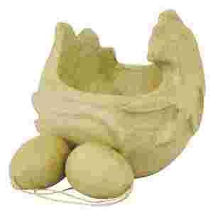 Wielkanoc Figurka z paper mache - Kura + 2 jajka
