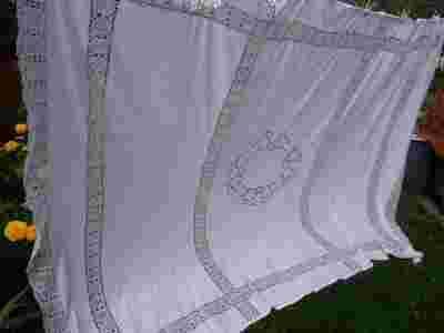 WIELKI BAWEŁNIANY OBRUS HAFT RICHELIEU KORONKA