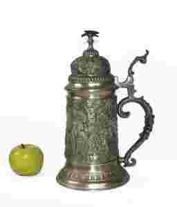 Wielki cynowy kufel z deklem