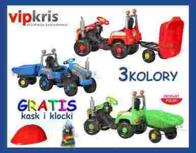Wielki Traktor na pedały z przyczepą 3 kolory do wyboru + GRATIS