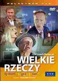 Miniserial Krzysztofa Krauzego, zrealizowany na podstawie opowiadań Jarosława Sokoła, obiecującego prozaika i scenarzysty. Każdy z trzech odcinków poświęcony jest innemu fetyszowi współczesnej cywilizacji: telewizorowi, samochodowi, telefonowi komórkowemu. Przedmioty te stanowią jednak tylko pretekst do ukazania powikłanych losów ludzkich. Atrybuty technologicznego postępu, wokół których koncentruje się akcja, stają się dla bohaterów Krauzego katalizatorami w nawiązaniu bliskich, uczuciowych stosunków z bliźnimi. Wielkie rzeczy, choć ukazują bez osłonek brutalność współczesnego świata, obfitują także w humor i ciepło. W odróżnieniu od poprzednich dokonań Krauzego, nie ma tu ostrości i publicystycznego zacięcia w portretowaniu rzeczywistości. To raczej - wedle słów reżysera - filmy ku pocieszeniu, mówiące o otwieraniu się serc w czasach, kiedy o to coraz trudniej. Akcja wszystkich trzech odcinków - zatytułowanych System, Gra i Sieć - toczy się w niewielkim mieście na wybrzeżu. Tytuł cyklu jest prowokacyjnie ironiczny. Sugeruje, że filmy opowiadają o mało znaczących perypetiach zwyczajnych, szarych ludzi. Jest to tylko pozór. Wielkie rzeczy w artystycznie przekonujący sposób udowadniają, że nawet przeciętnym jednostkom mogą przydarzać się rzeczy ważne i piękne, takie jak choćby miłość. |
