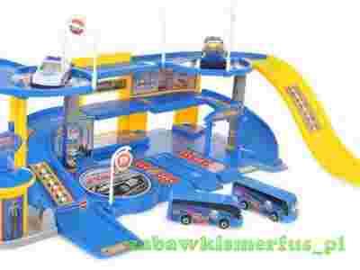 Zabawkowy wielopoziomowy parking policyjny + 4 samochody