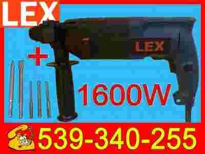 Młotowiertarka firmy LEX professional o mocy 1600W posiada uchwyt SDS+ oraz 3 funkcje: pierwsza wiercenie z udarem, druga blokada obrotów do lekkich prac wymagających kucia, trzecia kucie przy swobodnym ruchu obrotowym zapewniające maksymalną swobodę pracy. Sprzęgło zabezpieczające zapewnia ochronę na wypadek zakleszczenia się wiertła. Płynna regulacja prędkości obrotów w spuście. Dodatkowo przycisk umożliwiający pracę ciągłą. Ergonomiczny kształt i miękki uchwyt zapewnia komfort pracy. SDS+ Dostosowany do osprzętu SDS+.