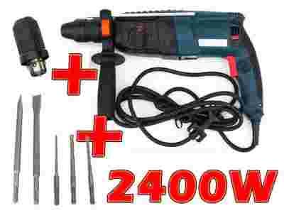 Młotowiertarka firmy LEX professional o mocy 2400W posiada uchwyt SDS+ oraz 4 funkcje: pierwsza wiercenie z udarem, druga blokada udaru do zwykłych operacji wiercenia i wkręcania, trzecia blokada obrotów do lekkich prac wymagających kucia, czwarta kucie przy swobodnym ruchu obrotowym zapewniające maksymalną swobodę pracy. Sprzęgło zabezpieczające zapewnia ochronę na wypadek zakleszczenia się wiertła. Płynna regulacja prędkości obrotów w spuście. Dodatkowo przycisk umożliwiający pracę ciągłą. Ergonomiczny kształt i miękki uchwyt zapewnia komfort pracy. SDS+ Dostosowany do osprzętu SDS+.