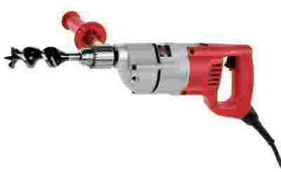 Wiertarka ręczna o mocy znamionowej 825 W, wyposażona w kluczykowy uchwyt wiertarski 1.5 - 13 mm, o maksymalnej prędkość 500 obr./min. Zdolność wiercenia w drewnie: 38 mm, w stali: 13 mm, w aluminium: 20 mm. W zestawie z dodatkowym uchwytem bocznym.