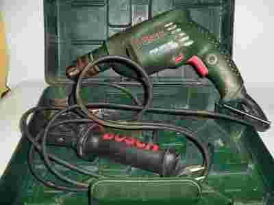 wiertarka udarowa BOSCH PSB 500 RE w komplecie z dodatkowym uchwytem i walizką.