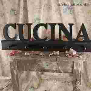 :: WIESZAK CUCINA :: Wspaniały wieszak - zwłaszcza dla wielbicieli włoskiej kuchni ! ! Wieszak jest drewniany, literki czarne , delikatnie przecierane na brzegach tworzącymi napis "Cucina". Wieszak ma pięć haczyków na ręczniki.... Wspaniała ozdoba kuchni, prezent... Wymiary: 57 x 17 cm