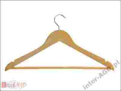 Wieszak posiada wyżłobienia na spódnice lub bluzki oraz poprzeczkę na spodnie.