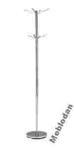 Wieszak wolnostojący, metalowy przeznaczony do odzieży lekkiej.