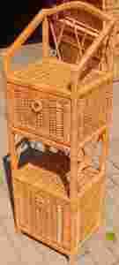 Przedmiotem aukcji jest komoda wykonana z taśmy wiklinowej na drewnianym stelażu. Tył szafki nie jest wypleciony taśmą.