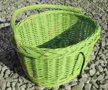 Przedmiotem aukcji jest kosz wiklinowy z zaczepami na kierownice, pasuje do większości rowerów. Rączka kosza składana.