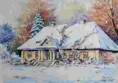 Wiktor Zin Dworek Duża Akwarela 40x30